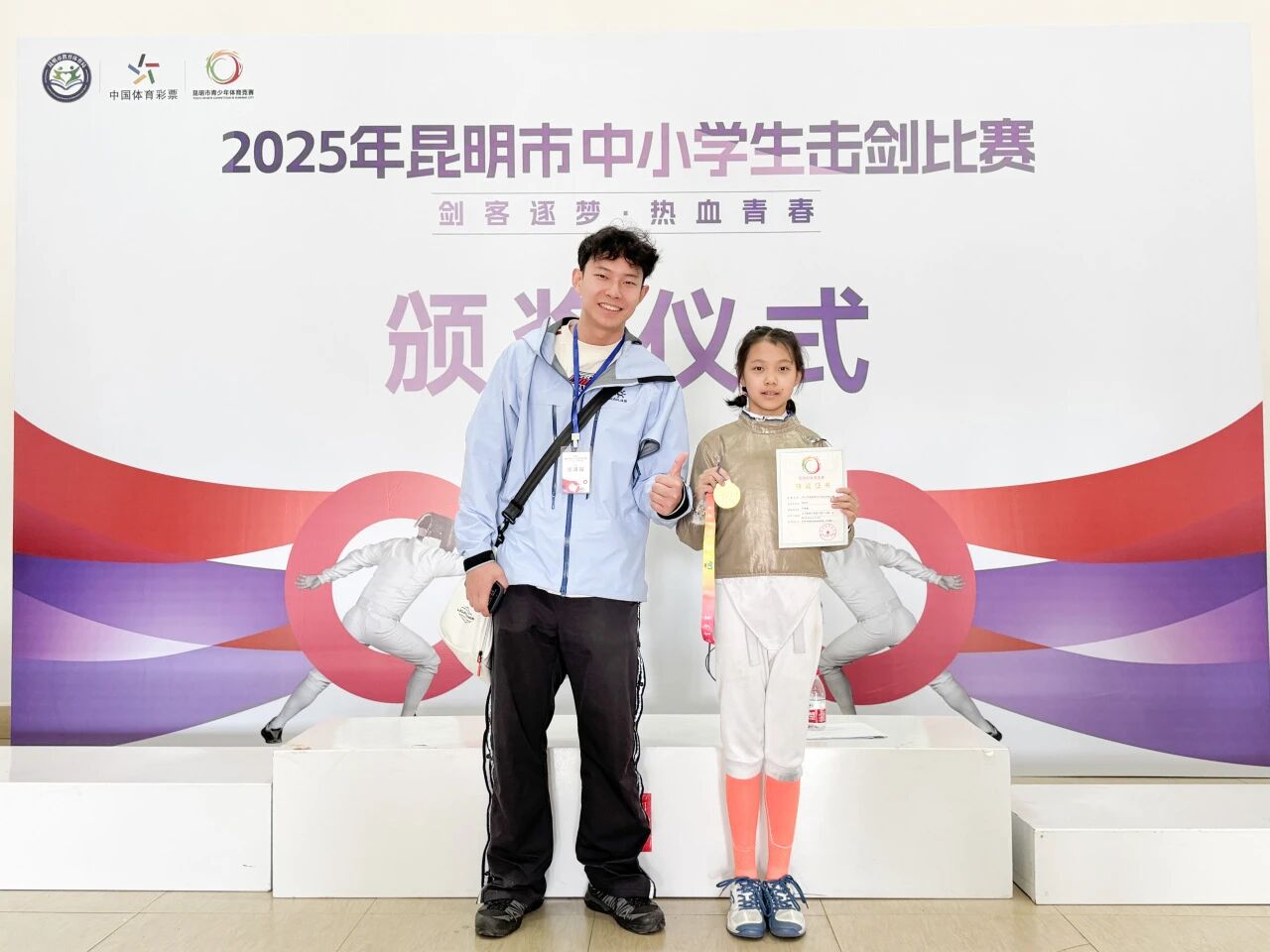 近日,在2025年昆明市中小学生击剑锦标赛的激烈角逐中,北清实验学校学子以卓越表现惊艳赛场!郑迪允同学勇夺女子佩剑个人赛金牌,以凌厉攻势与沉稳战术征服全场;张天翼、张天羽兄弟分别斩获男子花剑个人赛铜牌与第四名!